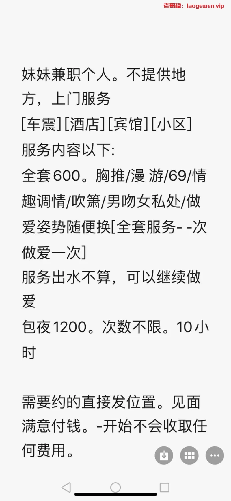 信息分类:楼凤兼职